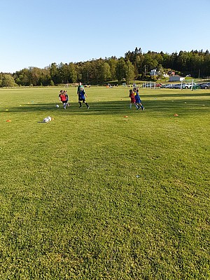 Träningspasset innehöll: agility, 3 mot 3/ 2 mot 2 med joker spel och de fick även prova på nästa års spelform 5 mot 5. Idag fick de även klappa sig själva på axeln och ge sig själva beröm efter en mycket bra genomförd träning.