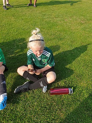 Idag var det 6 tappra tjejer på träningen, vi körde lite passningsövningar, med mycket vattenpauser och sedan körde vi match mot p13 och avslutade med glass efter en timmes träning i värmen.