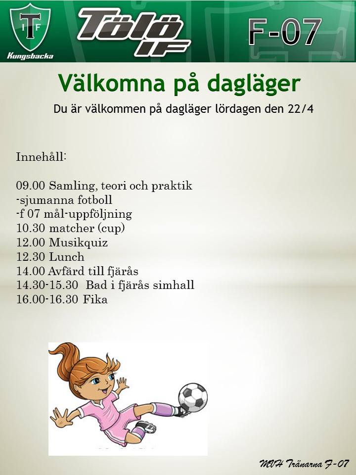 Nu har ni fått info på mailen om daglägret på Lördag. Viktigt att ni går in och läser all info. MVH Tränarna F-07.