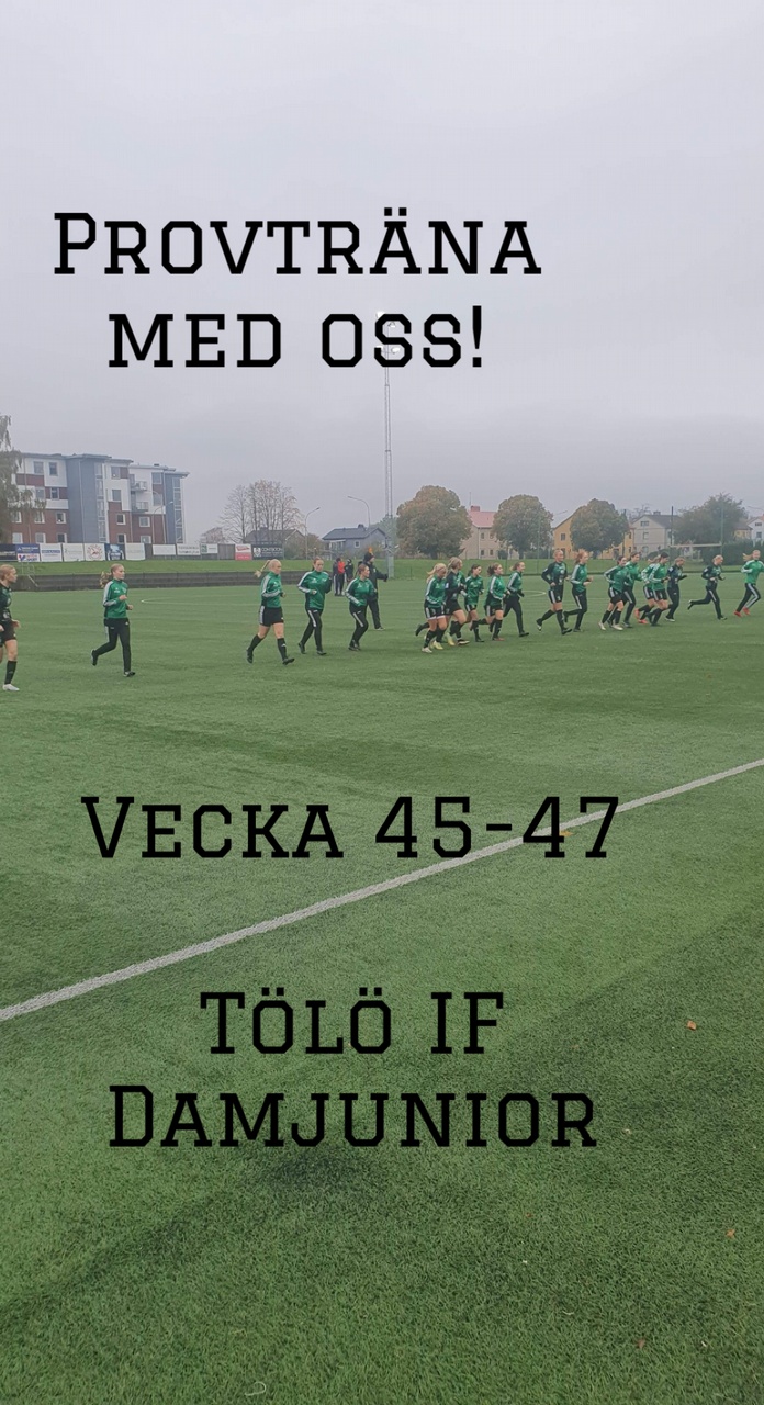 Tölö IF Damjunior har öppna träningar för provträning under v45-47. Tjejer födda 06/07.